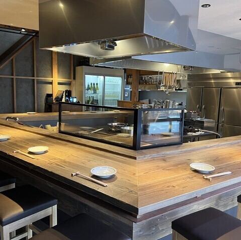1階のカウンター席では調理のライブ感を楽しむことができます。